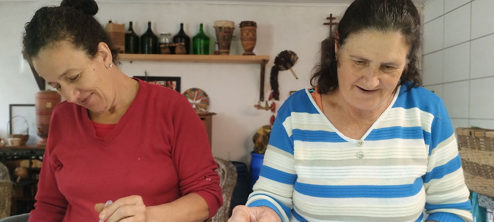 Chica, Néia e Gracinha foram secando as que ainda tinham pinguinhos de chuva e já fomos anotando as ervas que tínhamos. Um excelente exercício de memória e reconexão.